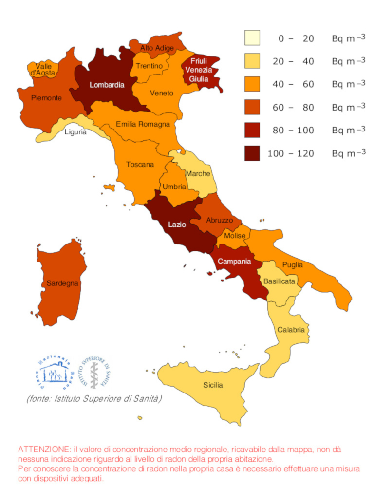 • 200 Bq/m3 in termini di concentrazione media annua di attività di radon in aria per abitazioni costruite dopo il 31 dicembre 2024;