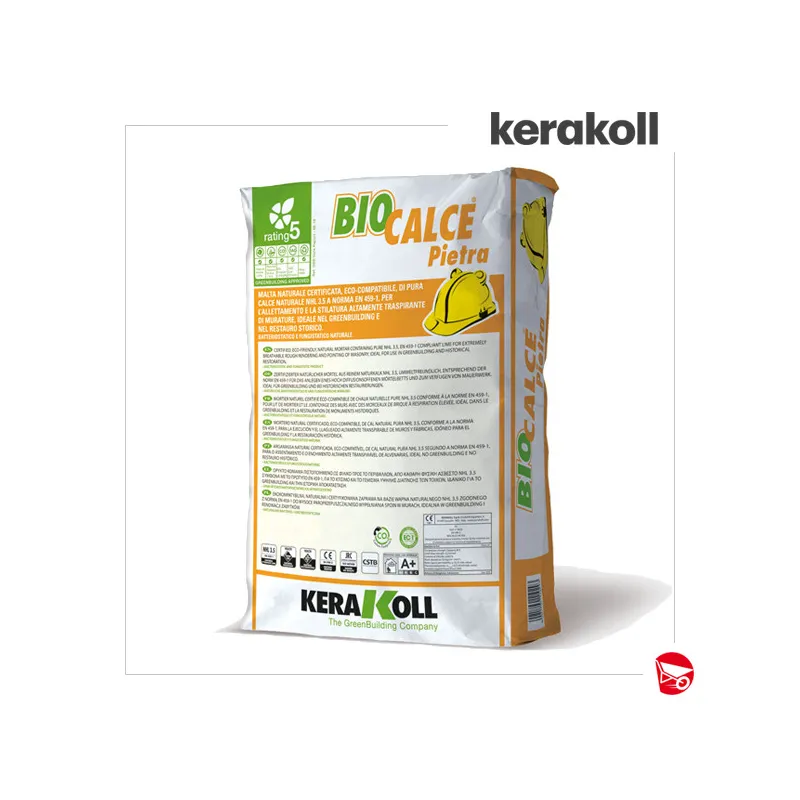 Malta naturale certificata di pura calce naturale NHL 3.5 a norma EN 459‑1, per l’allettamento e la stilatura altamente traspirante di murature.
