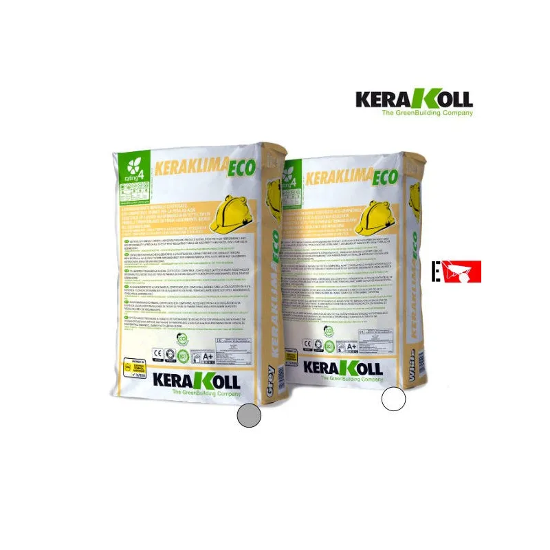 Keraklima Eco è specifico per l'incollaggio e la rasatura di sistemi per l’isolamento a cappotto su pannelli termoisolanti quali polistirene espanso, sinterizzato ed estruso, poliuretano, sughero, lana di roccia e di vetro, fibra di legno, su calcestruzzo, intonaco cementizio, rasanti minerali e cementizi. Bianco e Grigio. Interni, esterni. Ottima lavorabilità Prodotto del Sistema KlimaExpert ETA Bianco e grigio Disponibilità documentazione CAM Criteri Ambientali Minimi (D.M. 11/10/2017)