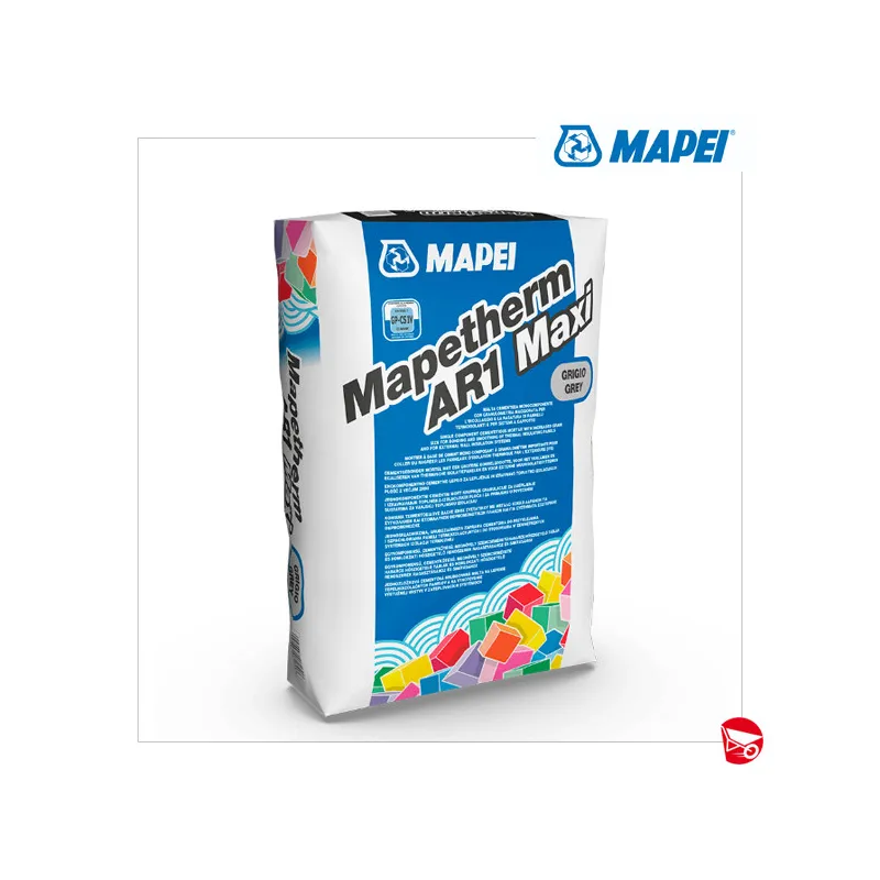 CARATTERISTICHE TECNICHE Mapetherm AR1 Maxi è una polvere grigia o bianca, composta da cemento, sabbie selezionate, resine sintetiche, fibre polipropileniche ed additivi speciali secondo una formulazione studiata nei laboratori di ricerca MAPEI, di granulometria fino a 1,4 mm.