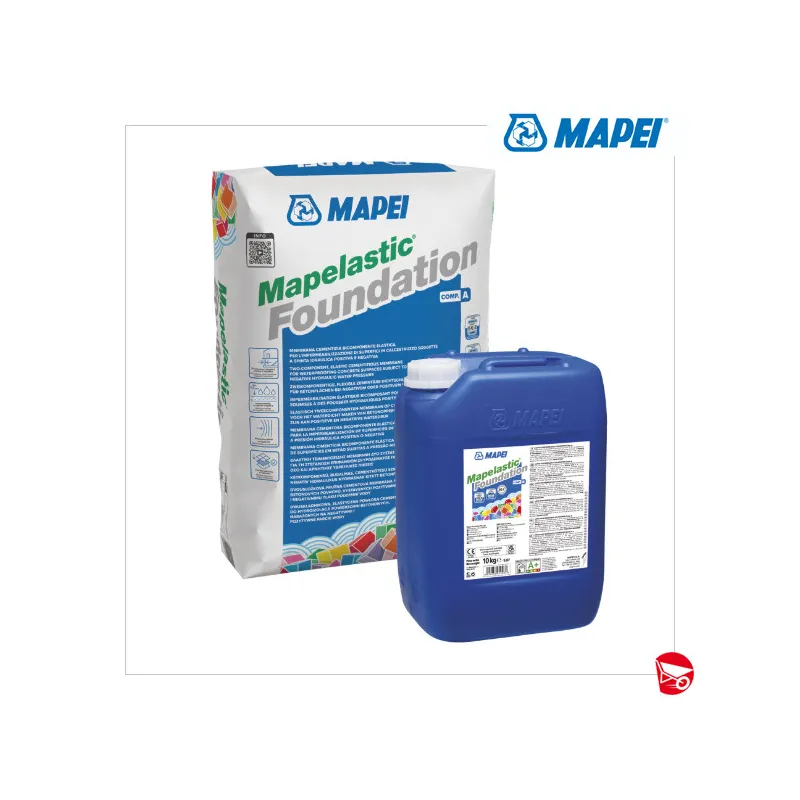 CAMPI DI APPLICAZIONE Impermeabilizzazione di strutture in calcestruzzo o murature soggette a spinta idrostatica positiva o negativa. È indicato per muri di fondazione, parcheggi e locali interrati, vasche, canali e piscine. Alcuni esempi di applicazione ▪ Impermeabilizzazione di murature controterra in calcestruzzo. ▪ Impermeabilizzazione in controspinta di parcheggi interrati, scantinati, piscine e vasche interrate, vani ascensore. ▪ Impermeabilizzazione di murature in blocchi preventivamente trattati con idonee malte MAPEI. CARATTERISTICHE TECNICHE Mapelastic Foundation è una malta bicomponente a base di leganti cementizi, inerti selezionati a grana fine, fibre inorganiche, additivi speciali e polimeri sintetici in dispersione acquosa, secondo una formula sviluppata nei laboratori di Ricerca & Sviluppo MAPEI. Miscelando i due componenti si ottiene un impasto di consistenza plastica che può essere facilmente applicato a rullo e a spruzzo, sia su superfici verticali che orizzontali in uno spessore non inferiore a 2 mm. L’elevato contenuto di resine sintetiche e la loro qualità conferiscono allo strato indurito di Mapelastic Foundation un’elevata elasticità, che si mantiene inalterata in tutte le condizioni ambientali. L’applicazione del prodotto, una volta miscelato, date le sue caratteristiche di tissotropia, riduce al minimo lo sfrido in fase di posa con rullo. Mapelastic Foundation è totalmente impermeabile all’acqua alla pressione positiva, mentre risulta impermeabile alla spinta negativa fino a 1,5 atmosfere (pari a 15 metri di colonna d’acqua). Una volta avvenuta la sua maturazione è resistente a sali solubili, come cloruri e solfati presenti nell’acqua di mare o nei terreni. L’adesione di Mapelastic Foundation, inoltre, è eccellente su tutti i supporti cementizi, previa idonea preparazione del supporto. Tutte queste proprietà fanno sì che le strutture protette ed impermeabilizzate con Mapelastic Foundation, si mantengano perfettamente asciutte nel tempo. Mapelastic Foundation risponde ai principi definiti nella EN 1504-9 (“Prodotti e sistemi per la protezione e la riparazione delle strutture in calcestruzzo: definizioni, requisiti, controllo di qualità e valutazione della conformità. Principi generali per l’uso dei prodotti e sistemi”) e ai requisiti richiesti dalla EN 1504-2 secondo i principi PI, MC e IR (“Sistemi di protezione della superficie di calcestruzzo”). Prodotto certificato EC1 Plus dal GEV (Gemeinschaft Emissionskontrollierte Verlegewerkstoffe, e.V.) come prodotto a bassissima emissione di sostanze organiche volatili (VOC).