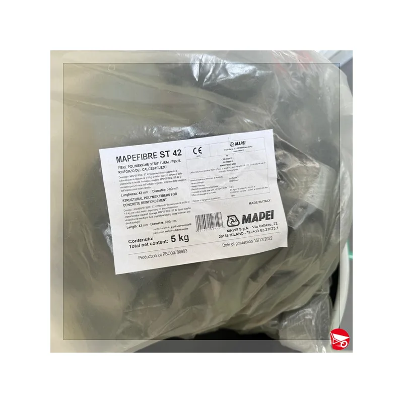 Mapefibre ST 42 sono fibre polimeriche strutturali, con lunghezza di 42 mm, studiate per migliorare le caratteristiche prestazionali dei calcestruzzi tradizionali, prefabbricati e proiettati.